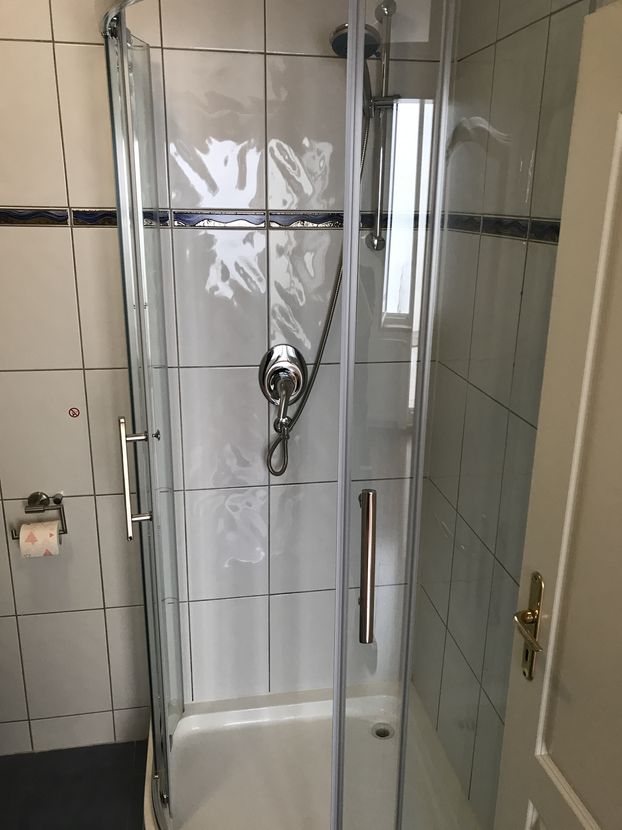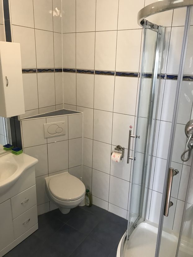 Vor einigen Jahren wurde das Badezimmer in passender Größe neu und stilvoll eingerichtet.